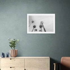 Bring the subtle exotic vibes to your home with this simple but spectacular print from Honeymoon Hotel. Featuring a monochrome finish and palm trees to add a dreamy feel to your space, this detailed print is made to last as it uses a Giclee printing process to stay vibrant and prevent fading over years. Each design is available in four print sizes and a variety of frame options, including unframed, so you can display your artwork however you wish.