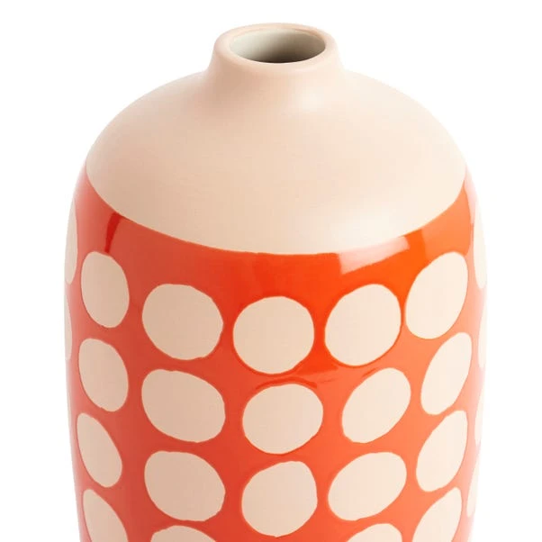 Featuring a modern, elegant design with an orange and pink colourway. This stunning Elements Skara Spot Vase would make a stylish addition to your home décor. Beautifully crafted from high quality stoneware with a wax resist spotted pattern and matt finish to create a stunning effect.