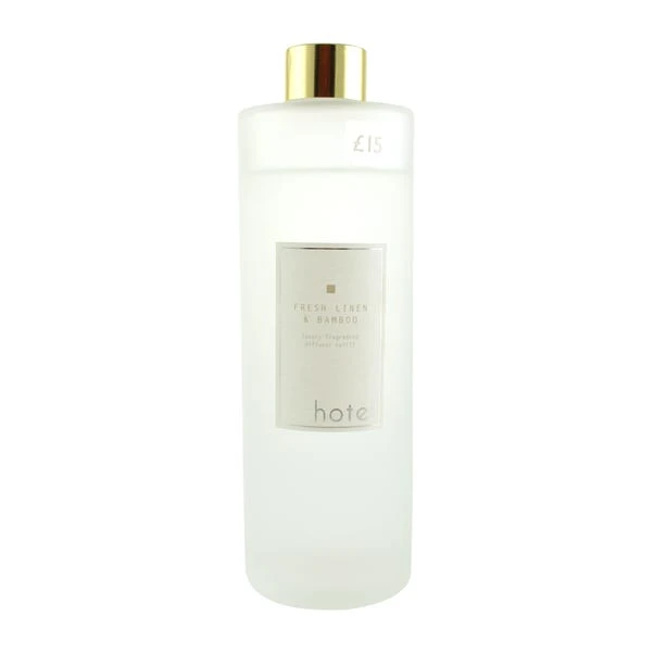 A modern linen fragrance opens with fresh citrus and leads to a white floral heart of lily and jasmine. Bamboo accords are complemented with white musk, vanilla & oak moss. The refill with last up to 26 weeks and refills the Hotel Bamboo and Linen Diffuser twice (available to buy separately. Each refill comes in a frosted glass vessel with a matte gold effect trim.