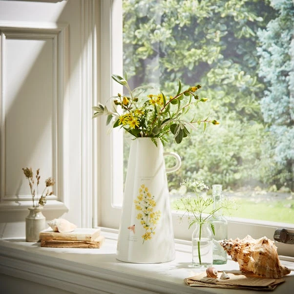 This beautiful, tapered jug shape vase with handles features a decorative floral decal design, perfect for adding an element of artistic design flair to any room, with its modern colourway, complementing an array of home decors beautifully. The Lady’s Bedstraw Ceramic Tall Vase is made from high-quality Fine China and is perfect for displaying indoor plants in your home.